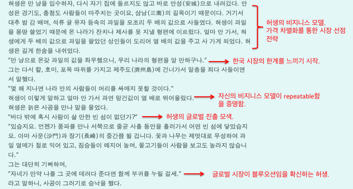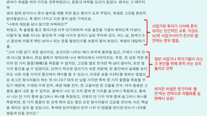 스타트업을 준비하는 예비창업자로서 블로그에 글을 순서대로 읽던중에 허생전을 코멘트와 함께 보니 스타트업과 비슷하다고 느껴지네요 :)