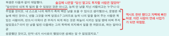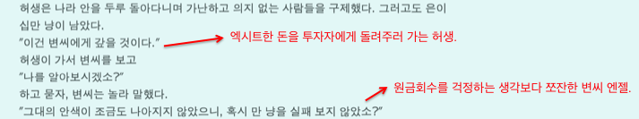 후략된 부분엔 성공한 사업가 허생을 정치권에서 영입하려는 움직임도 나온다. 내가 직업병이 있는지 몰라도, 이 정도면 현대인의 눈으로 봐도 정말 reality 넘치는 벤처 소설 아닌가?